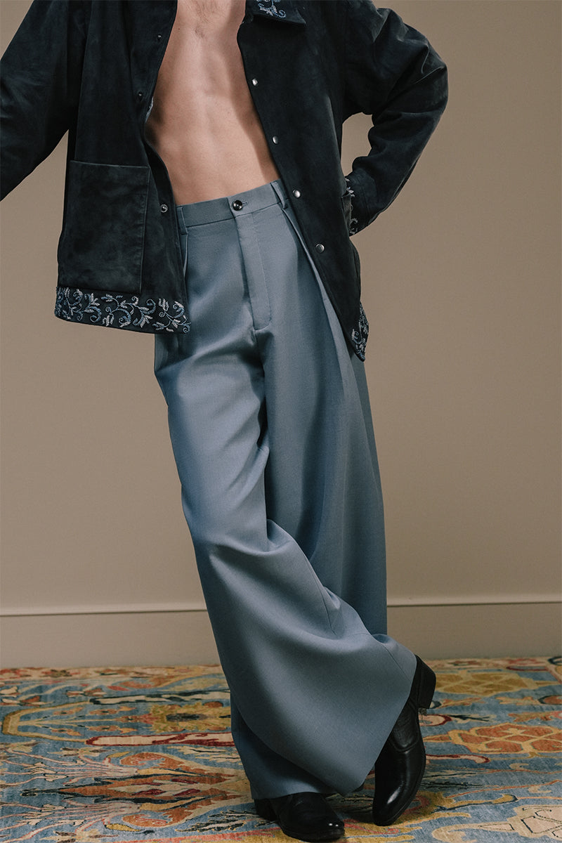 The Aariz trousers tailored with an exaggerated volume and effortless movement in fluid tropical fabric.