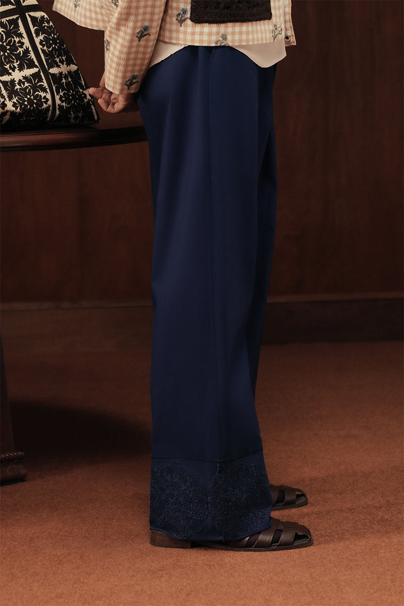 Crafted in soft twill, the Juno straight cut carpenter trousers with tone on tone Ralli patchwork embroidered at the hem.
