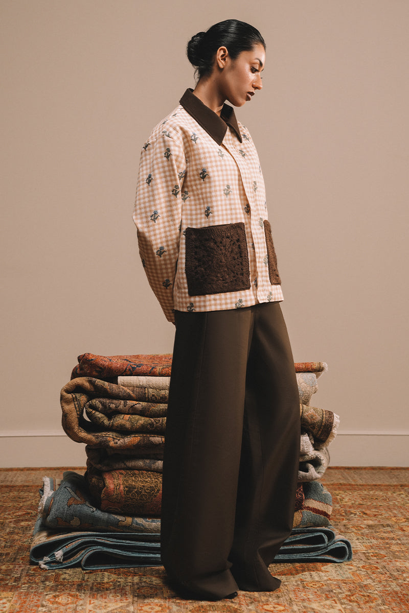 Tailored with an exaggerated volume and effortless movement, the Baris trousers feature an intricately embroidered waistband with phulkari-inspired patterns and subtle mirror and beadwork detailing.