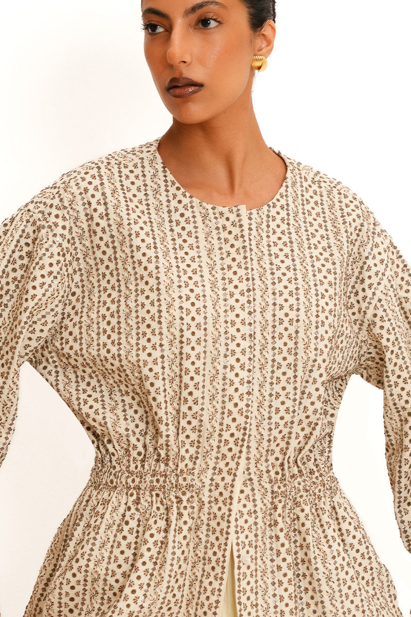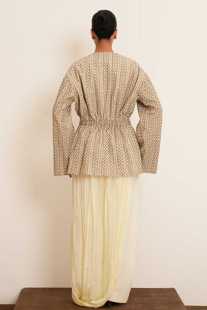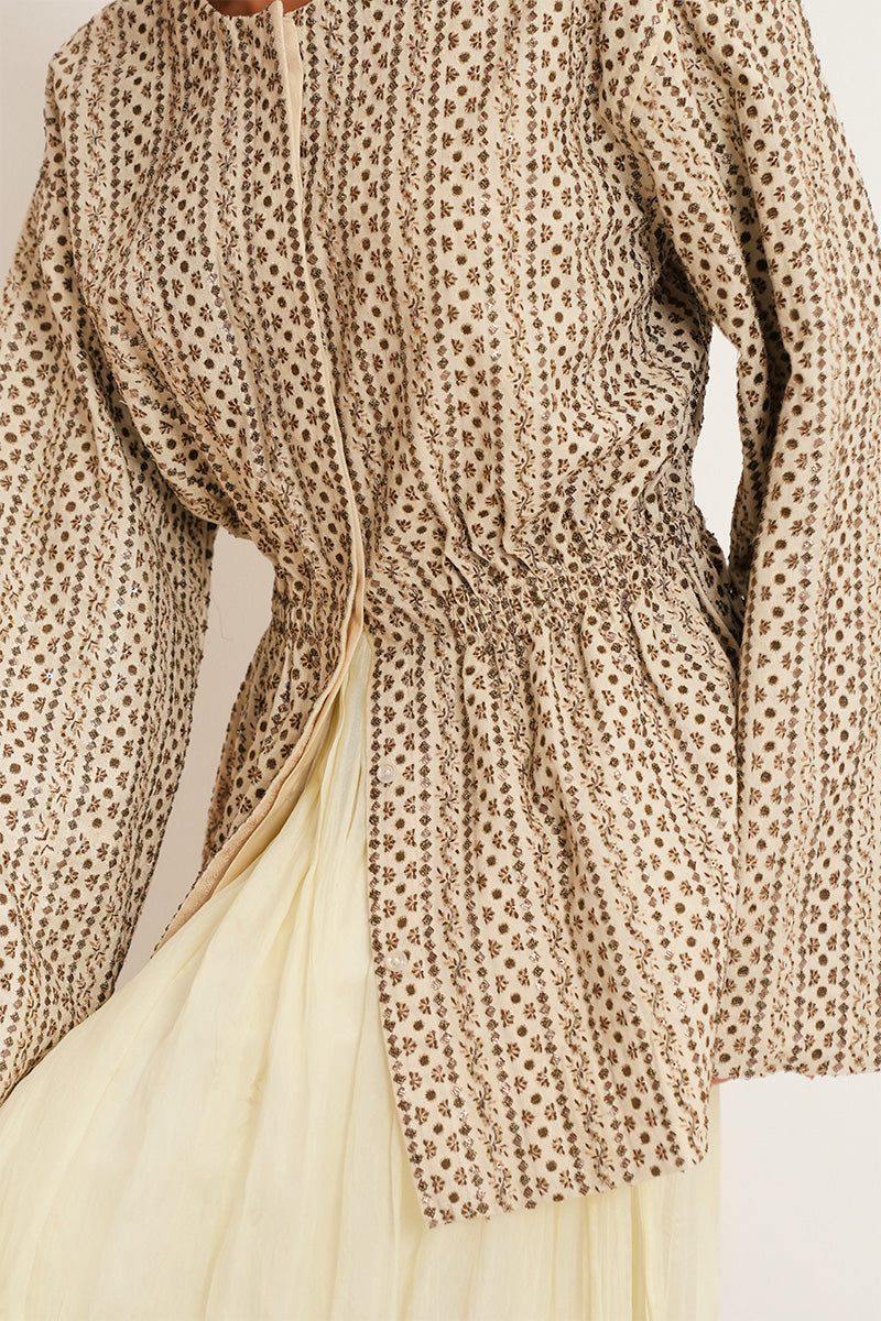 Elif structured peplum jacket with extensively hand embroidered detailing, crafted for an effortless yet elegant look.