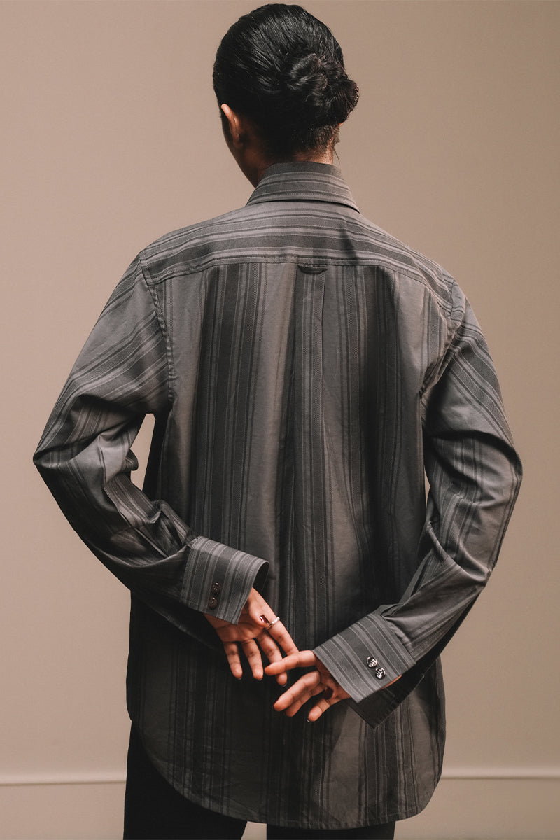 A refined essential elevated with hand embroidered detailing. An effortless buttoned shirt with Aomi’s signature “Peacock in Love” motifs richly embroidered and hand-embellished with beads, sequins, cutdana, and kora. To be worn both as a staple and a standout.